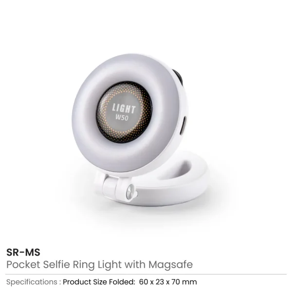 Compact MagSafe selfie ring light with cool and warm LED tones, adjustable brightness, and built-in battery—ideal for influencers, professionals, and promotional tech gifting.